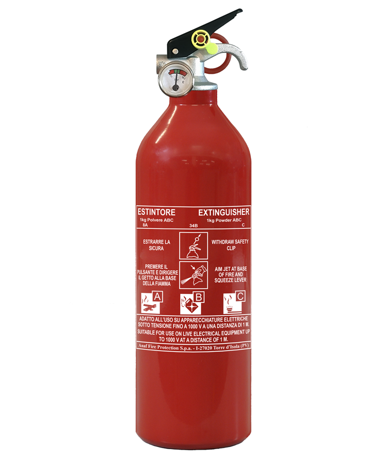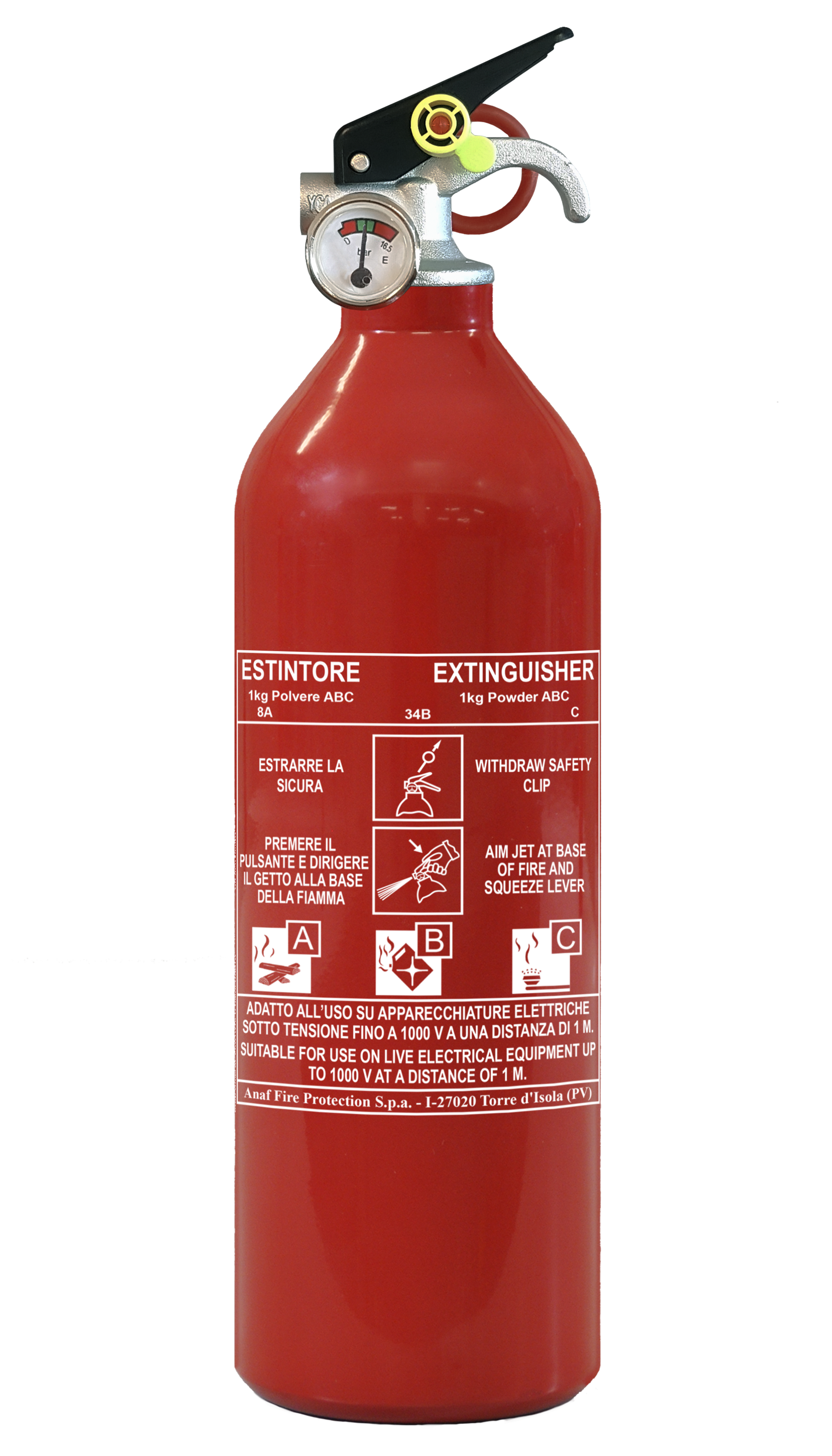 Portable, stored pressure, ABC TOP powder fire extinguisher, aluminum, 1 kg, with pressure gauge