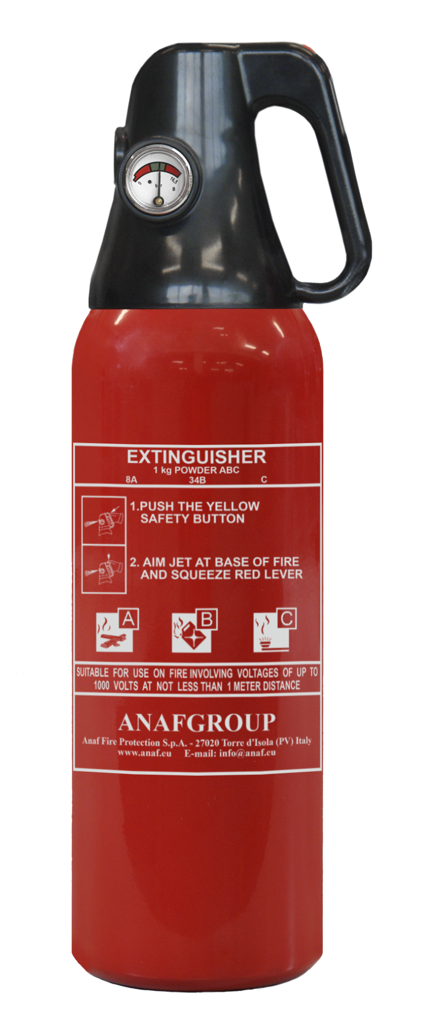 PS1-P is a 1Kg stored pressure, ABC and TOP powder fire extinguisher with pressure gauge.