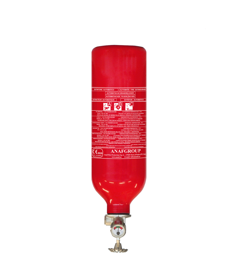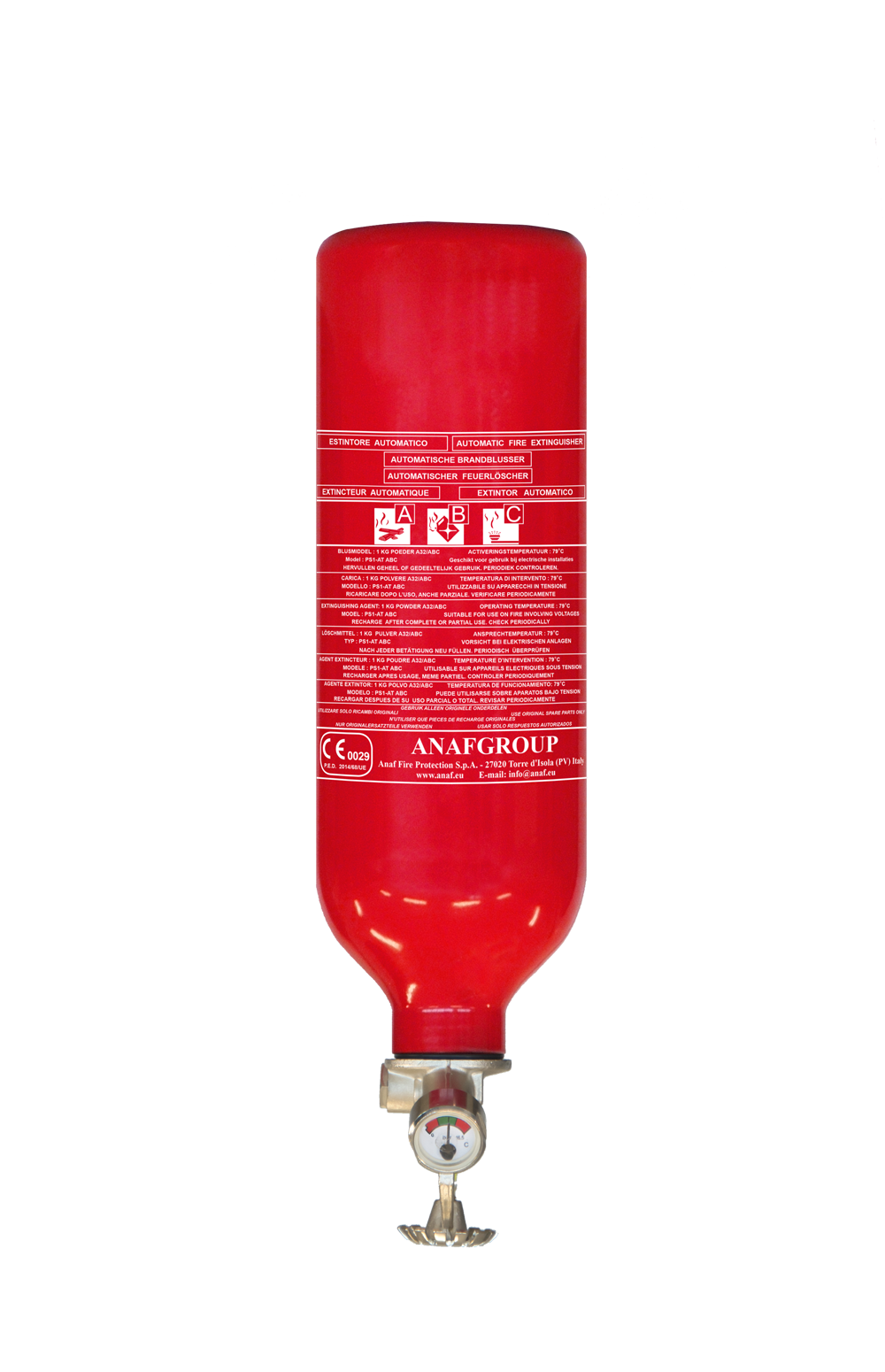 PS1-AT ABC is a stored pressure, multi-purpose dry powder automatic fire extinguisher with pressure gauge.