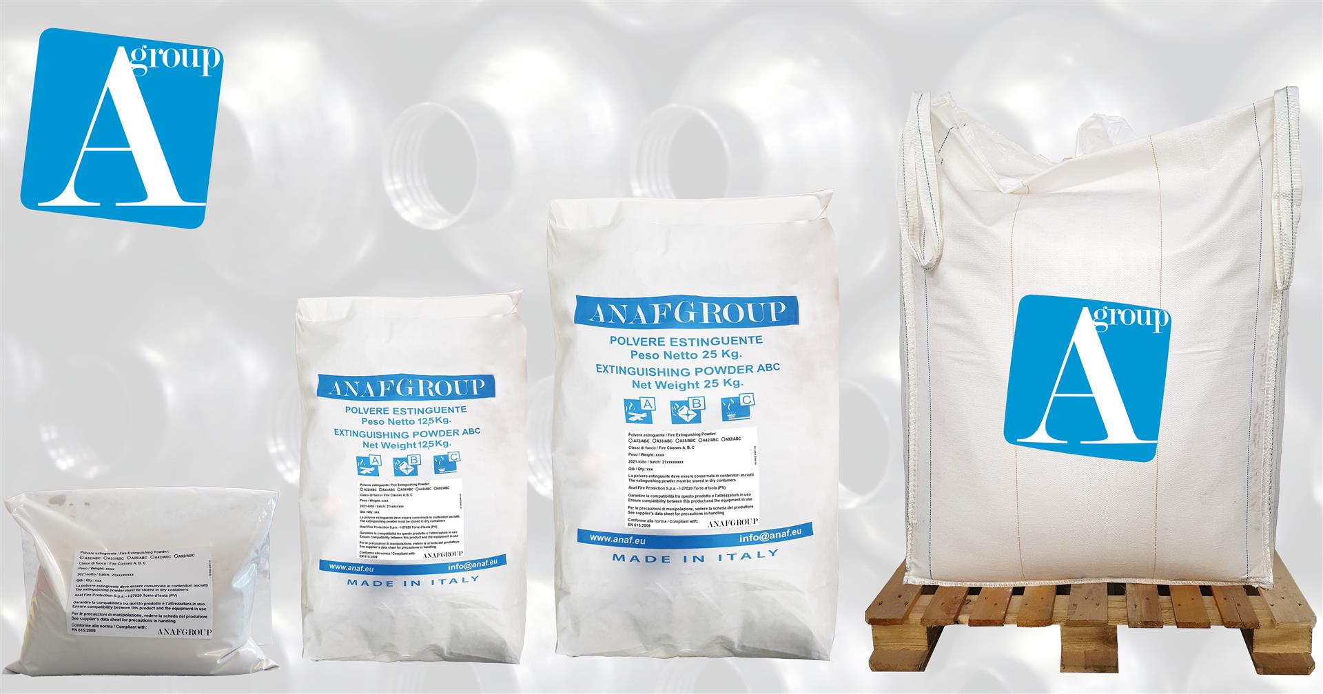 Polvo extintor polivalente ABC capaz de combatir fuegos de clase A, B y C, certificado según EN615. Producimos el polvo extintor en nuestras fábricas: todo el ciclo de producción está bajo nuestro control. Cumplimos con los más estrictos estándares de calidad, muchas veces más estrictos que los exigidos por la normativa vigente.