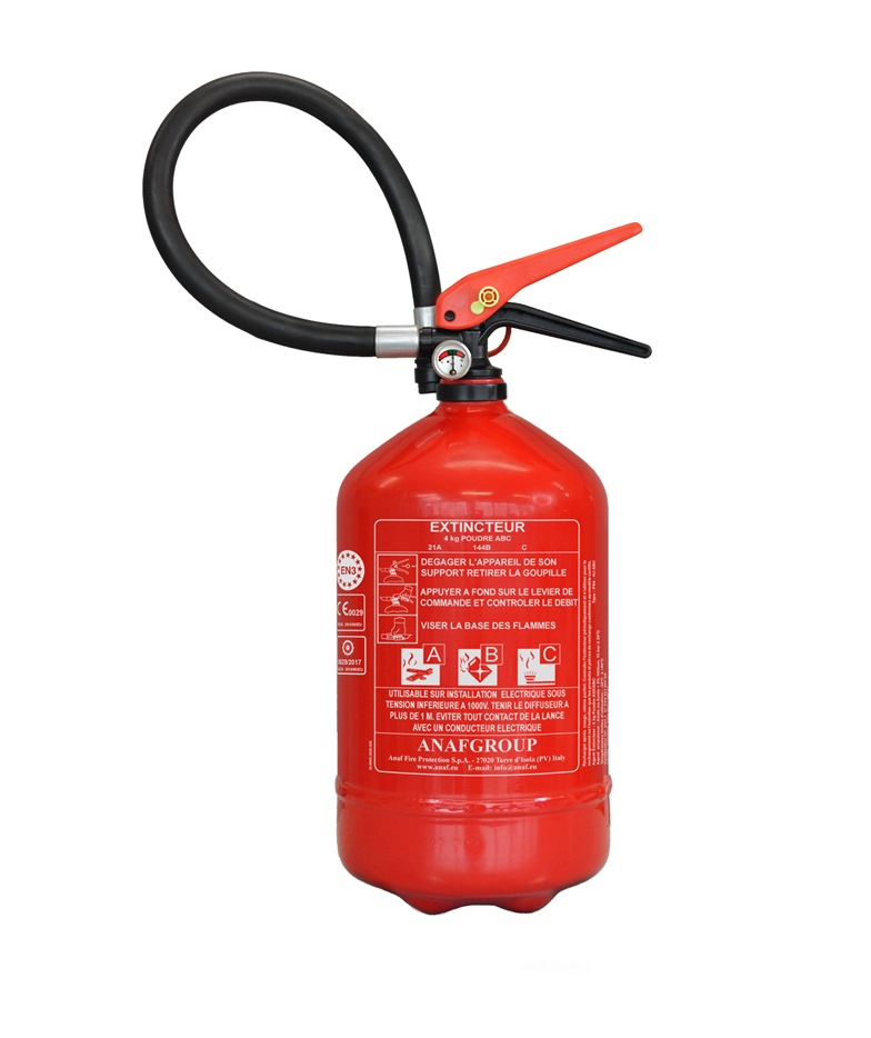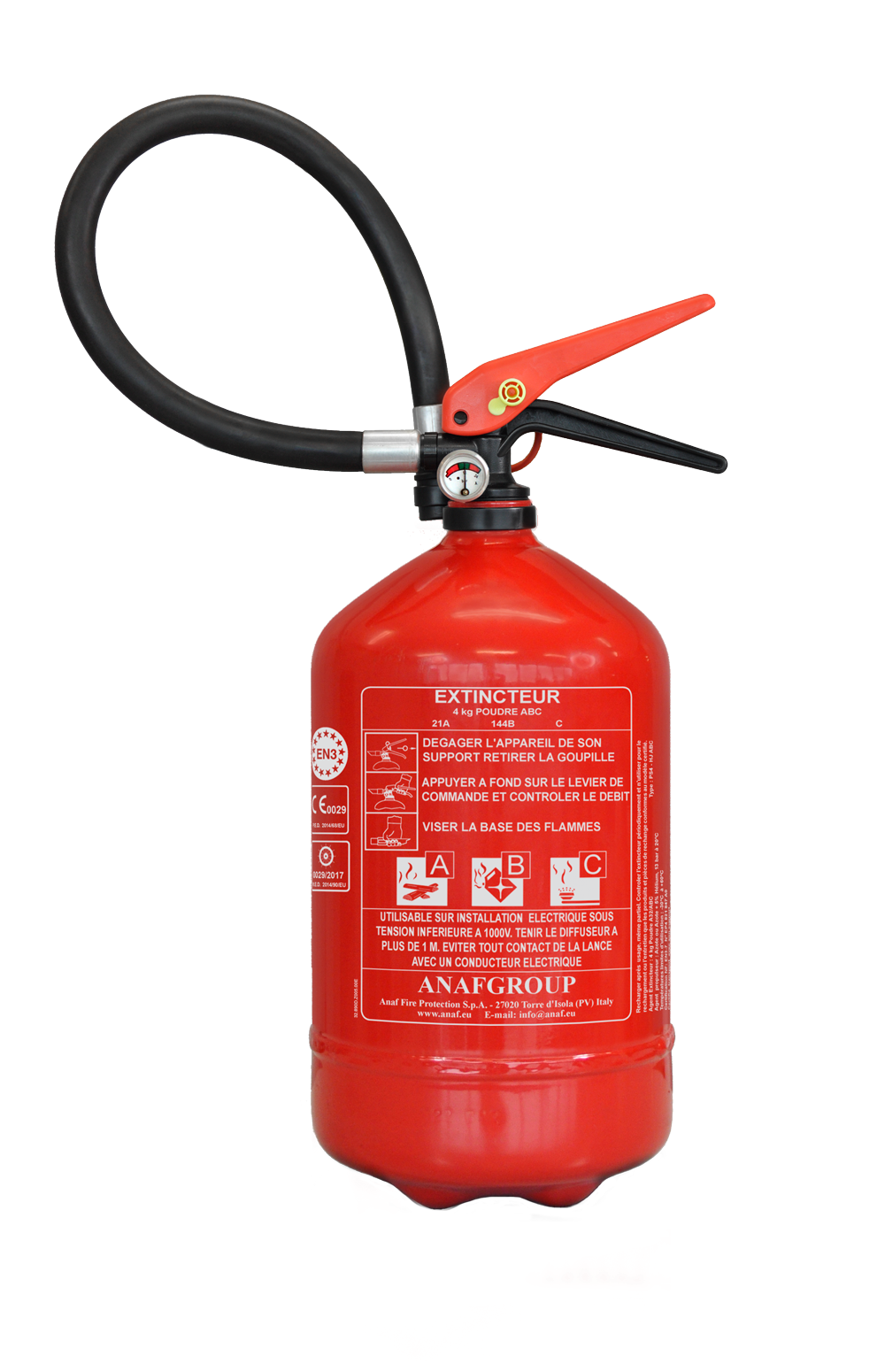 Extintor portátil presurizado 4 kg, polvo ABC, con válvula de fácil agarre en resina acetálica, con manómetro, con certificación MED