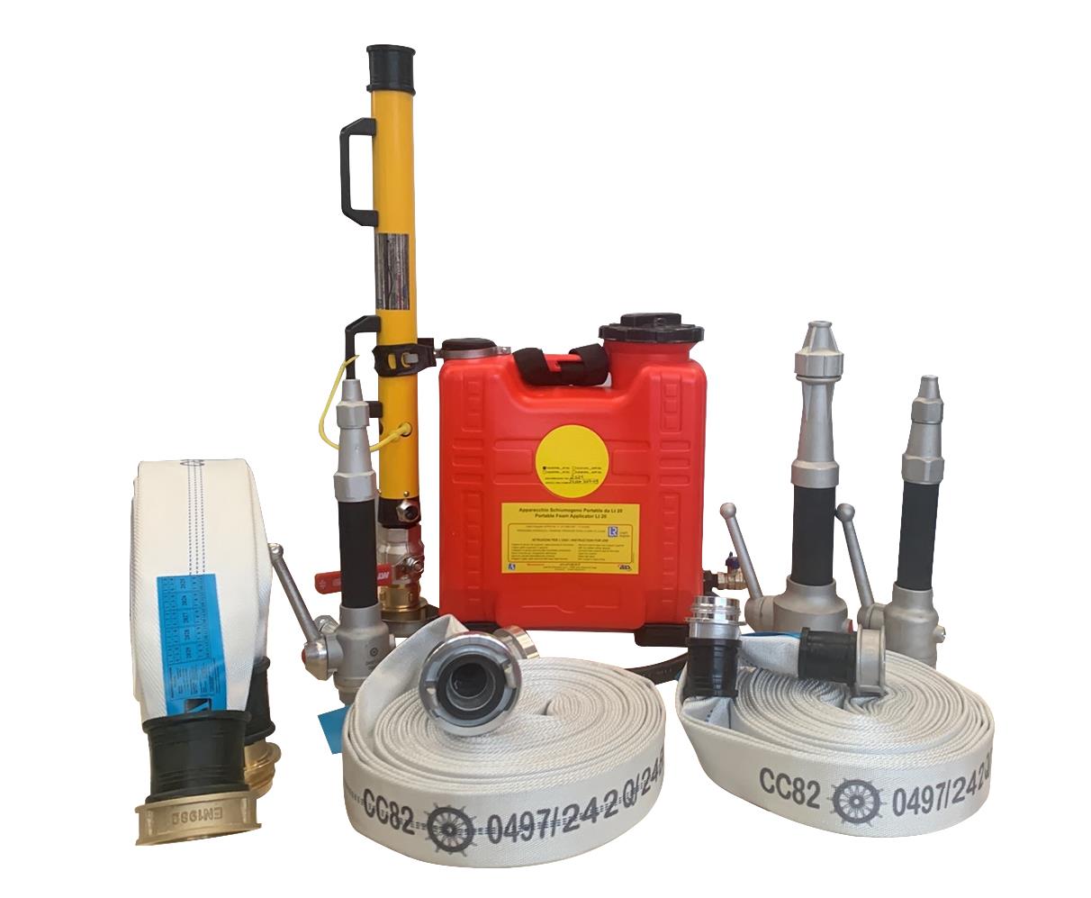 - Spallabile portatile con capacità da 20 lt e lance in alluminio UNI 45 MED conformi anche alla norma UNI EN 671/2 e UNI 70 MED conformi anche alla norma UNI EN 15182