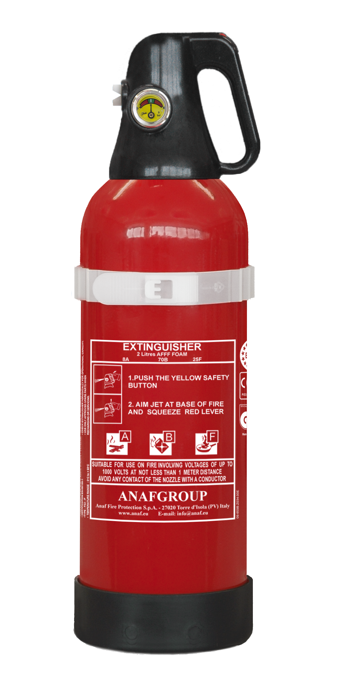 de classe F. Certifié selon la Directive Equipements sous Pression PED 2014/68/EU, Directive Européenne pour la Marine MED 2014/90/EU et NF EN3. Tous les extincteurs sont contrôlés par un système électronique de détection des fuites à base d’hélium.