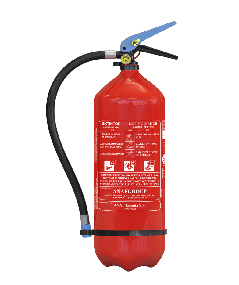 FS6-JF est un extincteur pressurisé à eau additivée avec corps en aluminium et manomètre. Certifié selon la Directive Equipements sous Pression PED 2014/68/EU, la Directive Européenne pour la Marine MED 2014/90/EU et NF-EN3. Tous les extincteurs sont contrôlés par un système électronique de détection des fuites à base d’hélium.