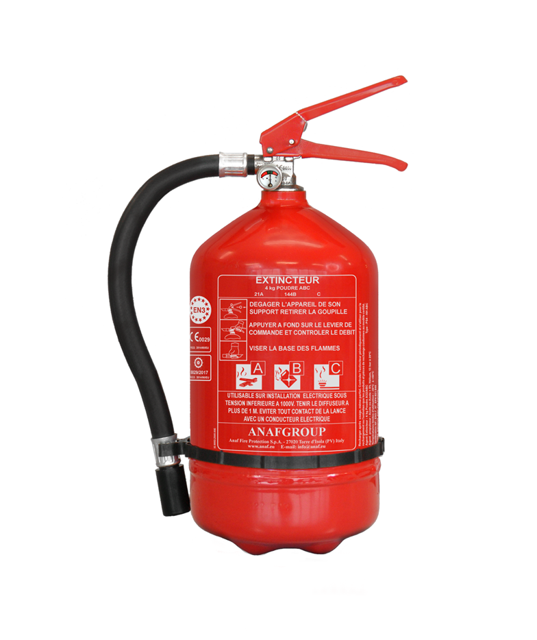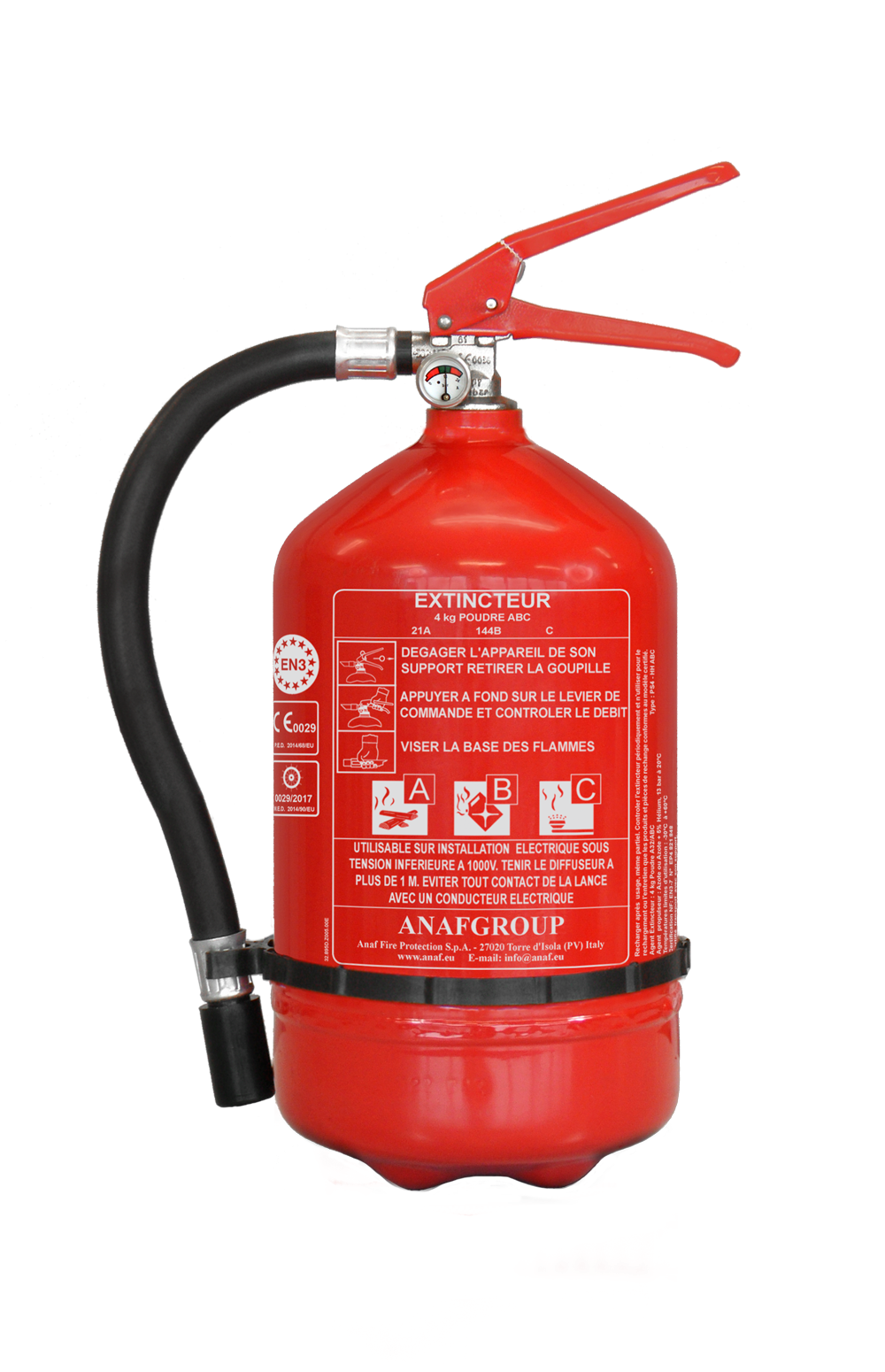 PS4-HH ABC est un extincteur pressurisé à poudre avec manomètre. Températures d’utilisation de –30°C à +60 °C, par conséquent adéquat aussi dans les pays à températures extrêmes. Certifié selon la Directive Equipement Sous Pression PED 2014/68/EU, Directive Européenne pour la Marine MED 2014/90/EU et NF EN3. Tous les extincteurs sont contrôlés par un système électronique de détection des