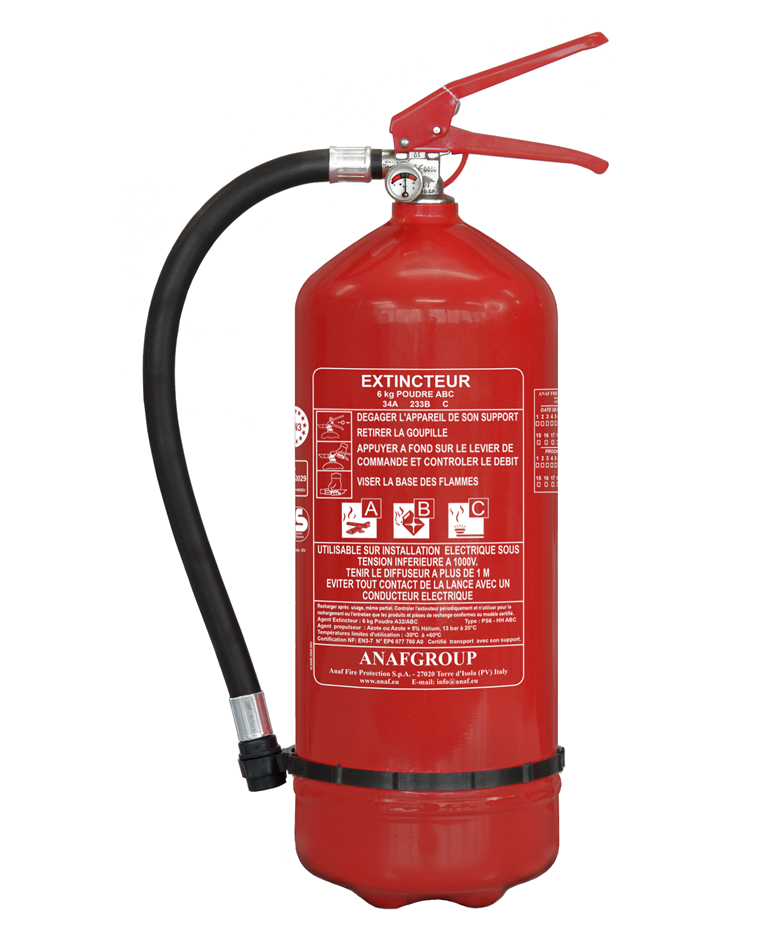 PS6-HH ABC est un extincteur pressurisé à poudre avec manomètre. Températures d’utilisation de –30°C à +60 °C, par conséquent adéquat aussi dans les pays à températures extrêmes. Certifié selon la Directive Equipement Sous Pression PED 2014/68/EU, NF EN3 et Directive Européenne pour la Marine MED 2014/90/EU sur demande. Tous les extincteurs sont contrôlés par un système électronique de détection des fuites à base d’hélium.